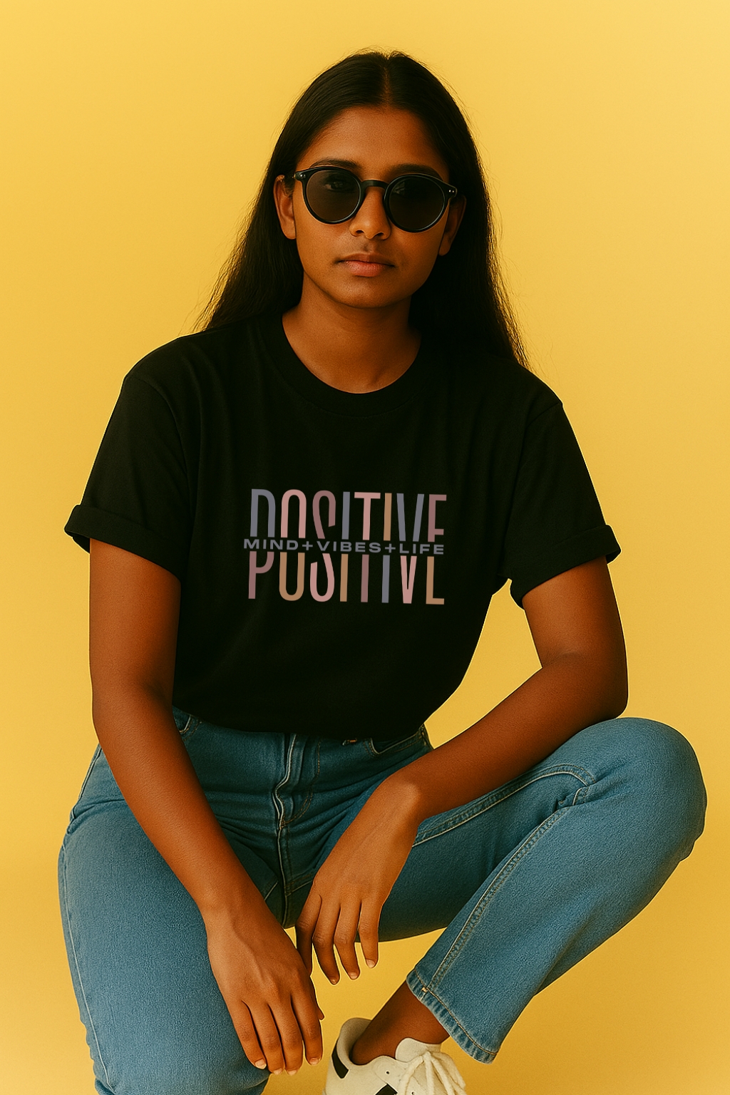 • Print: High-Quality DTF “POSITIVE Mind + Vibes + Life” Design
