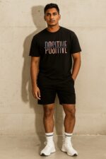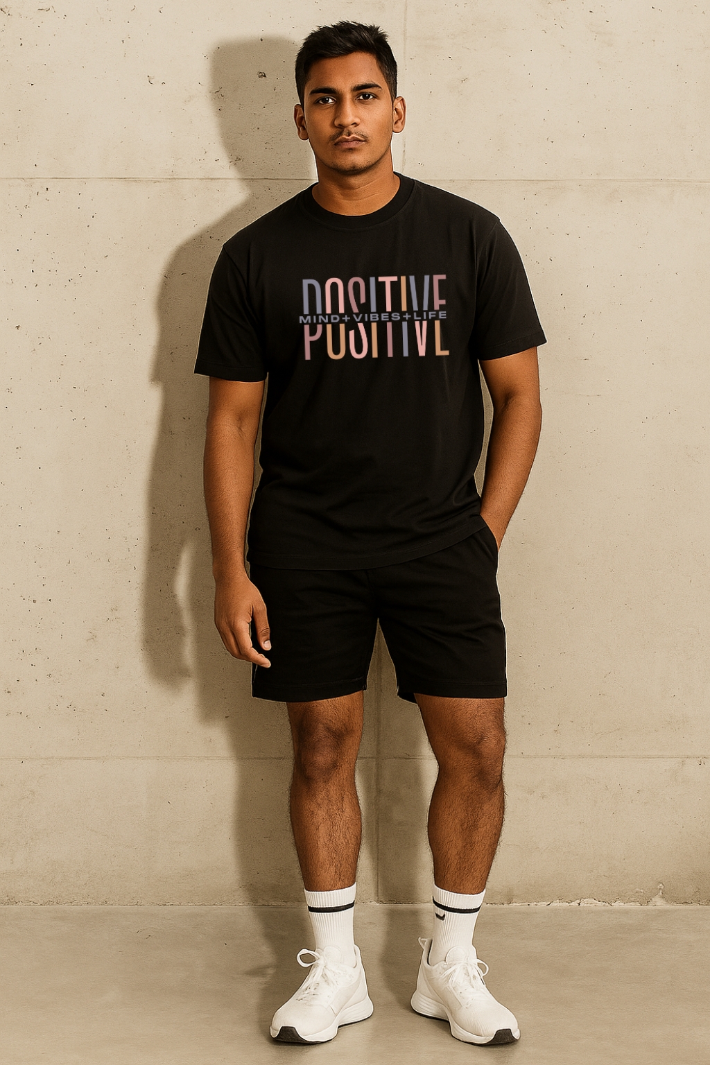 Crafted from soft, breathable 190 GSM cotton, this regular-fit tee is ideal for casual days, gym sessions, or meetups. The minimalist design with multicolor “Positive” text adds a touch of attitude while keeping things clean and versatile.