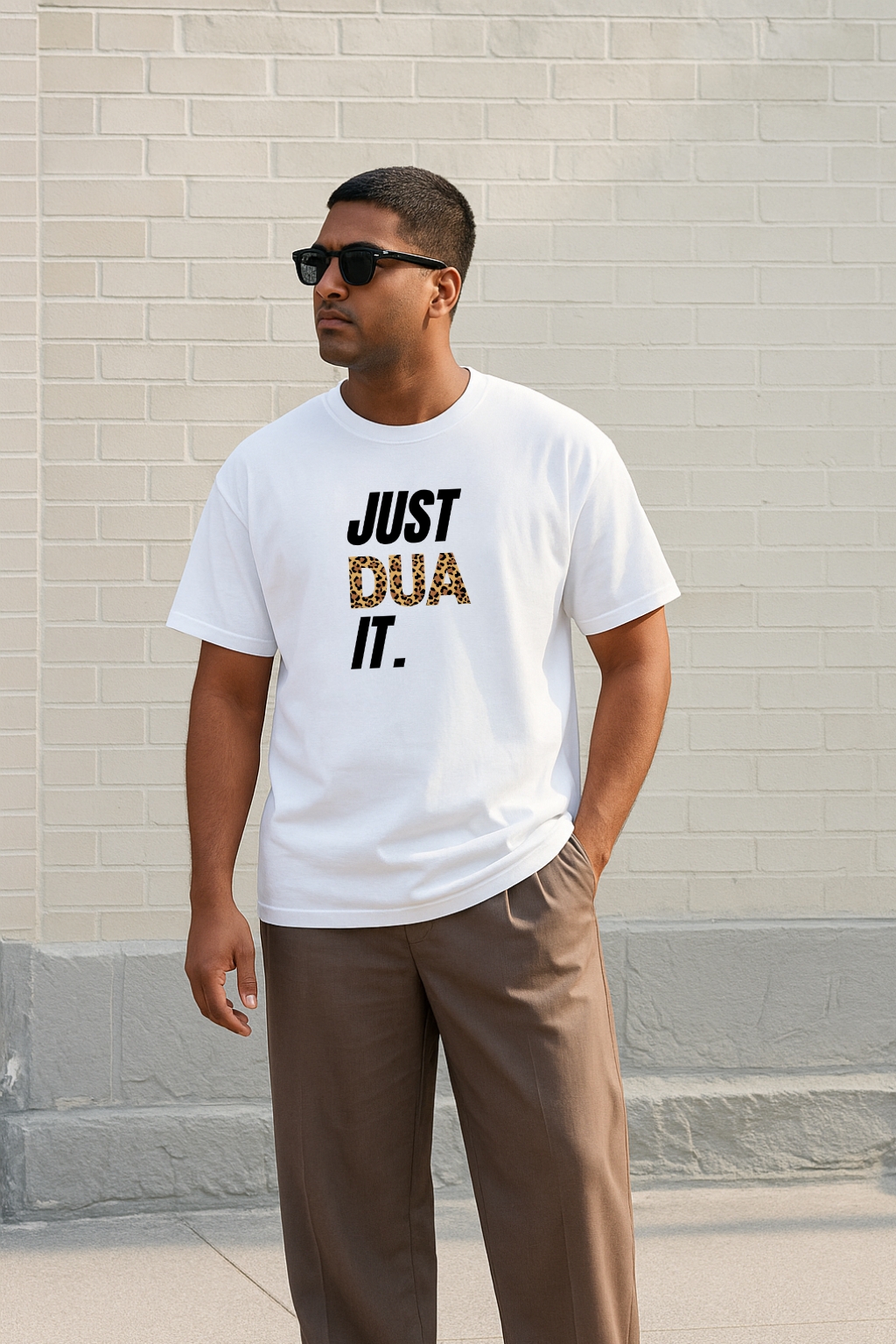 Home MEN JUST DUA IT. Oversized Unisex T-Shirt – White | 220 GSM Cotton | Islamic Streetwear in Sri Lanka