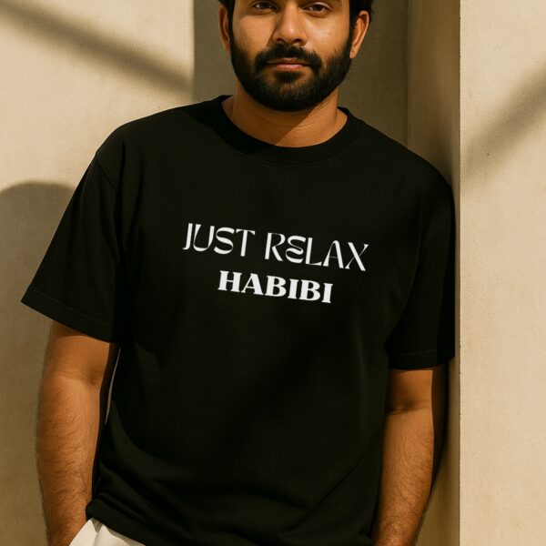 Just Relax Habibi Black T-Shirt – Regular Fit | 190 GSM Cotton