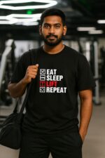 Home MEN Eat Sleep Lift Repeat – Oversized Unisex Gym T-Shirt (Black)